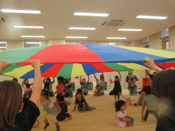 最後に、大きなバルーンを使ってボール遊びやトンネルくぐりを
